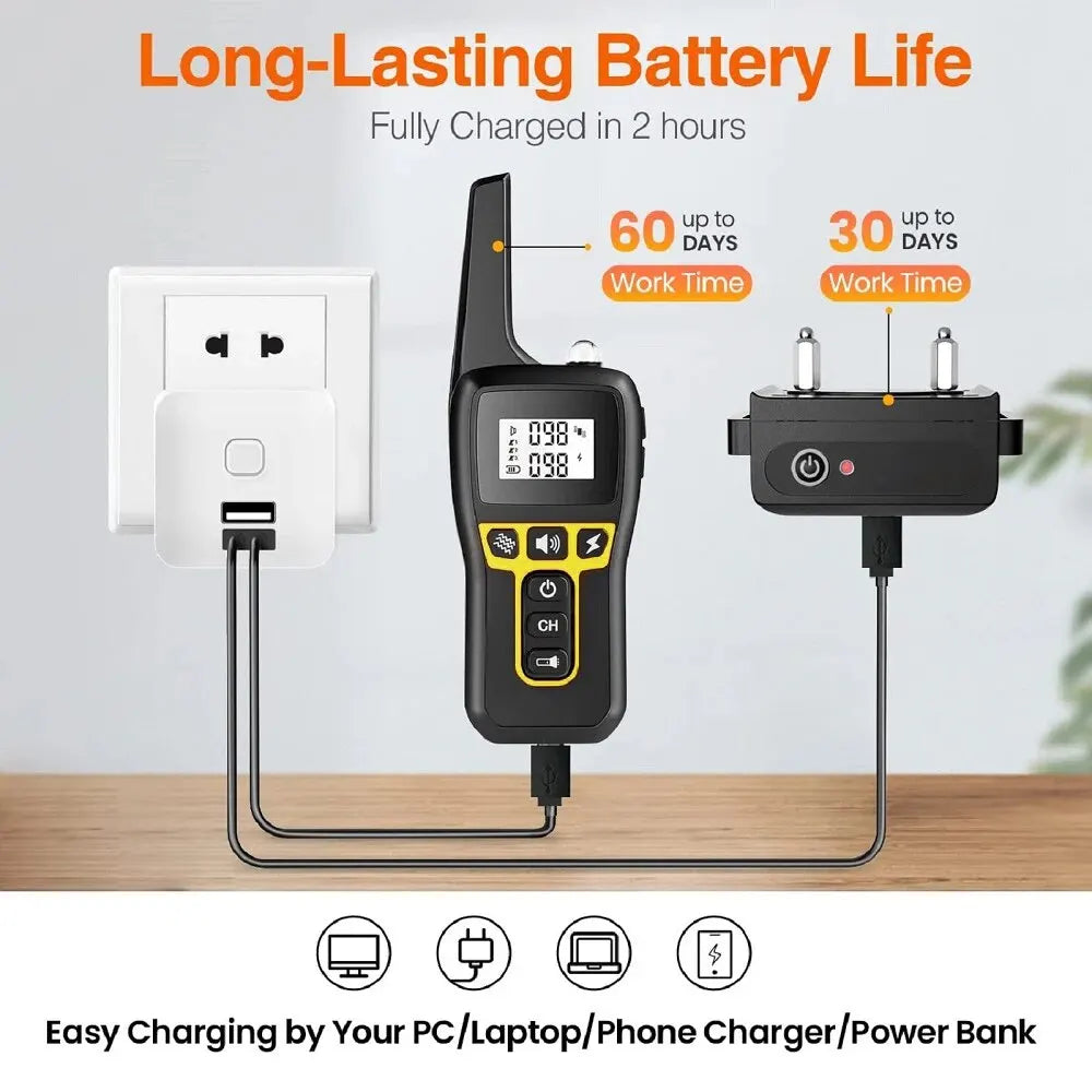 With a remarkable 1000m range, you’ll maintain authority even from afar. The adjustable, reflective nylon collar ensures both comfort and safety, while the IP67 waterproof construction prepares it for any outdoor adventure or weather condition.