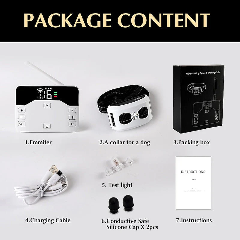 The cutting-edge Wireless Electronic Fence will protect your pet. This device, which combines a wireless electronic fence with a dog training collar, provides sophisticated functionality and easy-to-use operation for efficient pet training and boundary control.