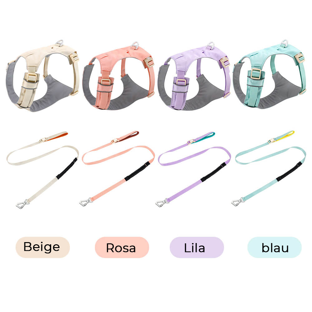 The harness and lead are designed for dogs weighing up to 35 kg and are suitable for both small and large breeds. With their robust build and high-quality materials, this product is made to last, making it ideal for your daily walks!