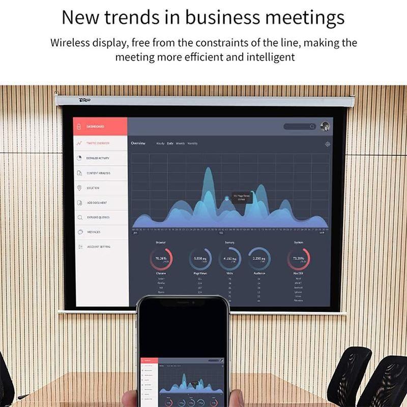 Support up to 1080P resolution. Support most mainstream smart devices, iOS device(iOS 9.0+) and Android device(Android 4.4+)and Windows device(ONLY Miracast enabled Windows device)