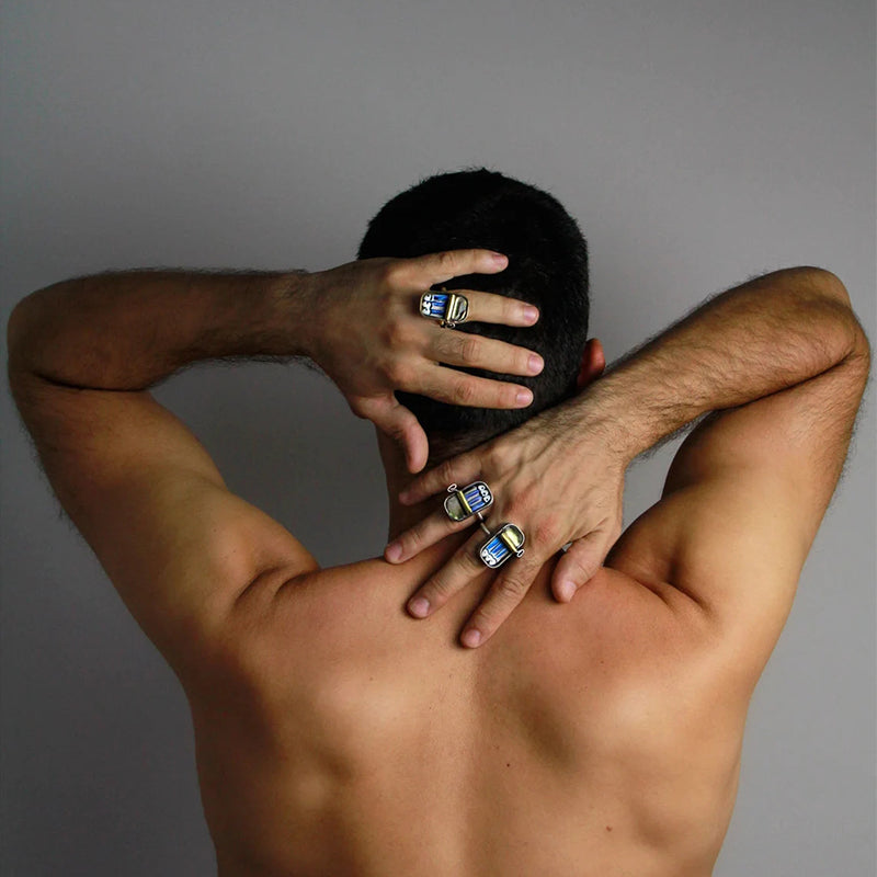 💍Inspired by the common sardine can, vintage ring with the shape of a tin can and with porcelain blue enamel sardines in the inside.