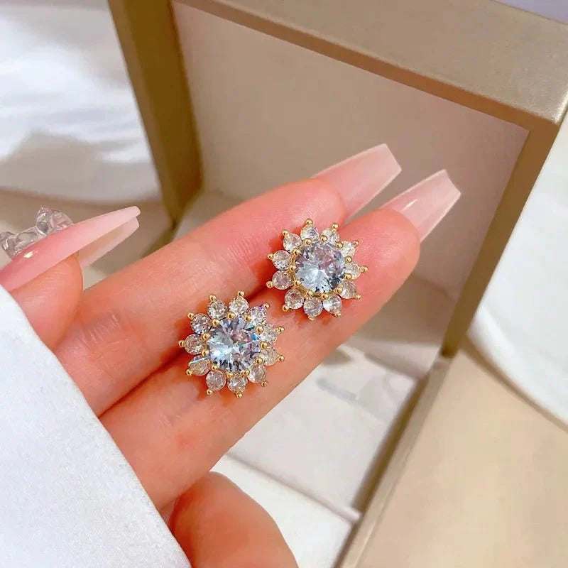 - Design: This collection includes a necklace alongside matching earrings, each featuring a gorgeous sunflower design. The sunflowers are finely crafted from radiant zircon diamonds, secured with gold prongs that amplify their shine. This floral theme is not only visually striking but also carries deep symbolism, embodying warmth, joy, and energy.