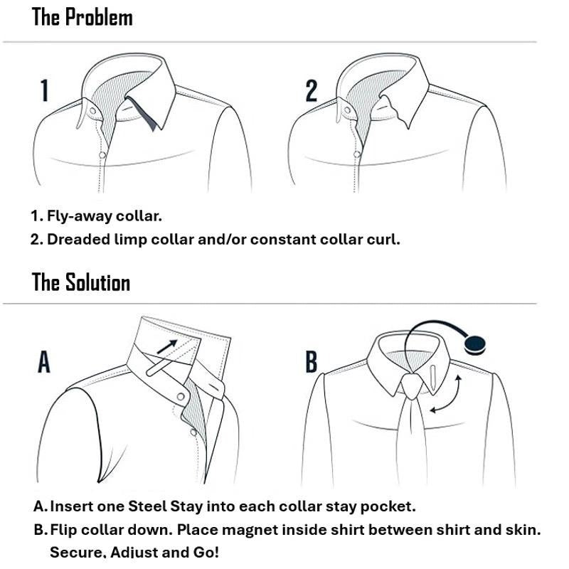 Transform your shirt collar with SteelStays for a fresh, professional look every time you wear your shirt. Whether you're preparing for a big meeting or just want to look sharp for the day, these magnetic collar stays make it quick and easy!