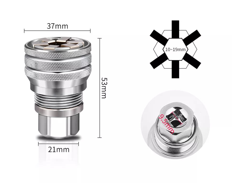 ● To increase productivity, it has the ability to rotate and change size in accordance with job specifications. The applicable range is 10-19mm, and the clockwise rotation ● Increases in size while the counterclockwise rotation decreases in size.