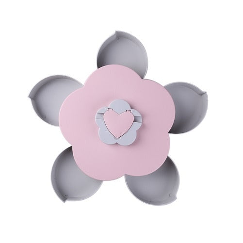 Creative petal shape, like flower bloom, beautiful and stylish, rotating open cover design, conform to fashion and trend. Partition design, convenient for sorting and storage, saves space when stacked, or can be used as a desktop storage tray.