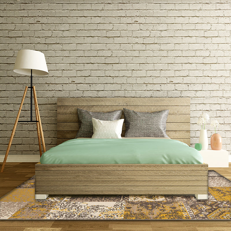 BowLift | Shabby Chic Tribal Pattern Rug Blue and Yellow Polyester Rug Machine Washable Non-Slip Rug for the Bedroom