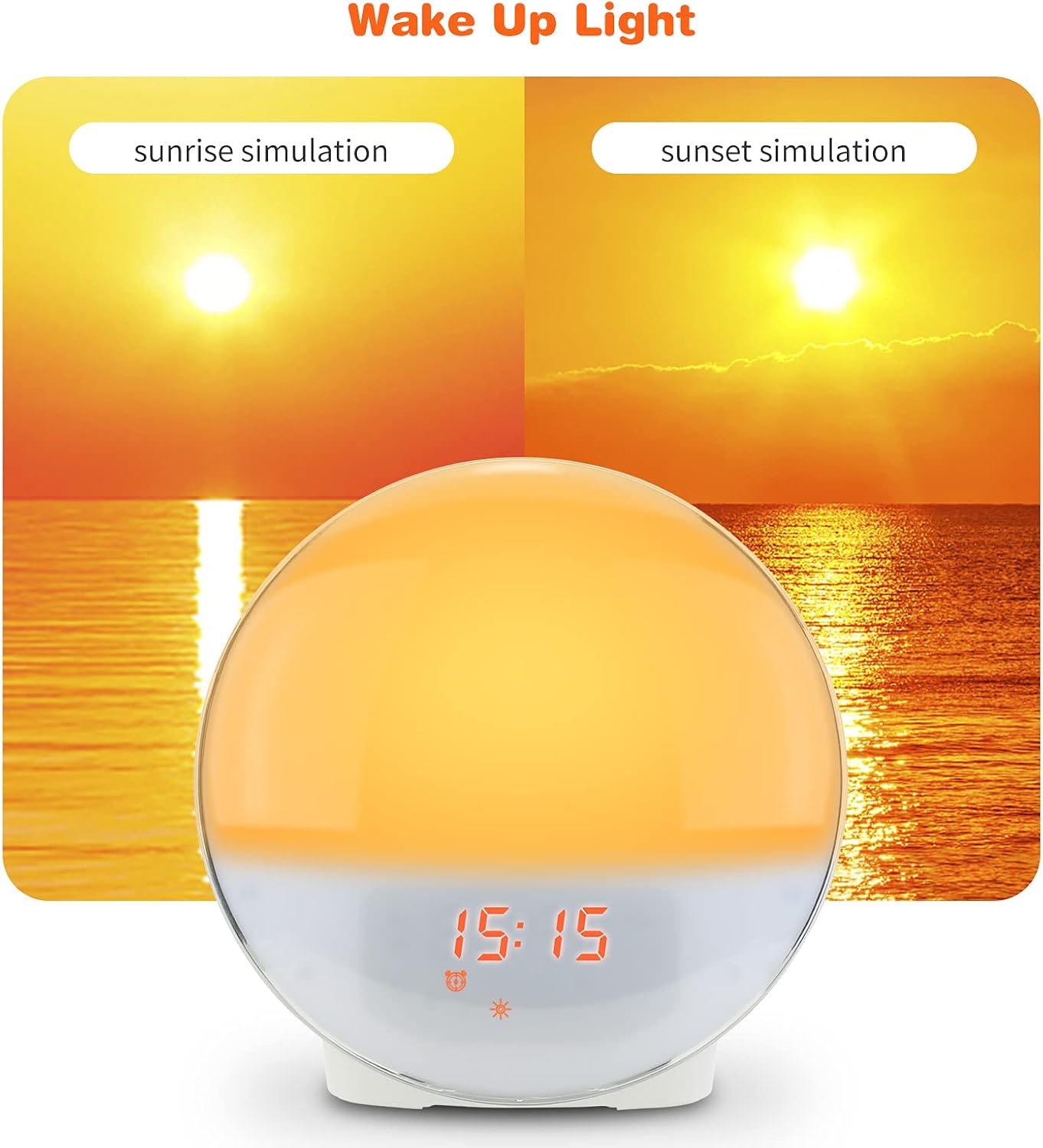 Imagine… being ripped from sleep by a blaring beep. This sunrise alarm clock gently wakes you using gradually increasing light—like the rising sun—so you feel calm and refreshed in the morning.